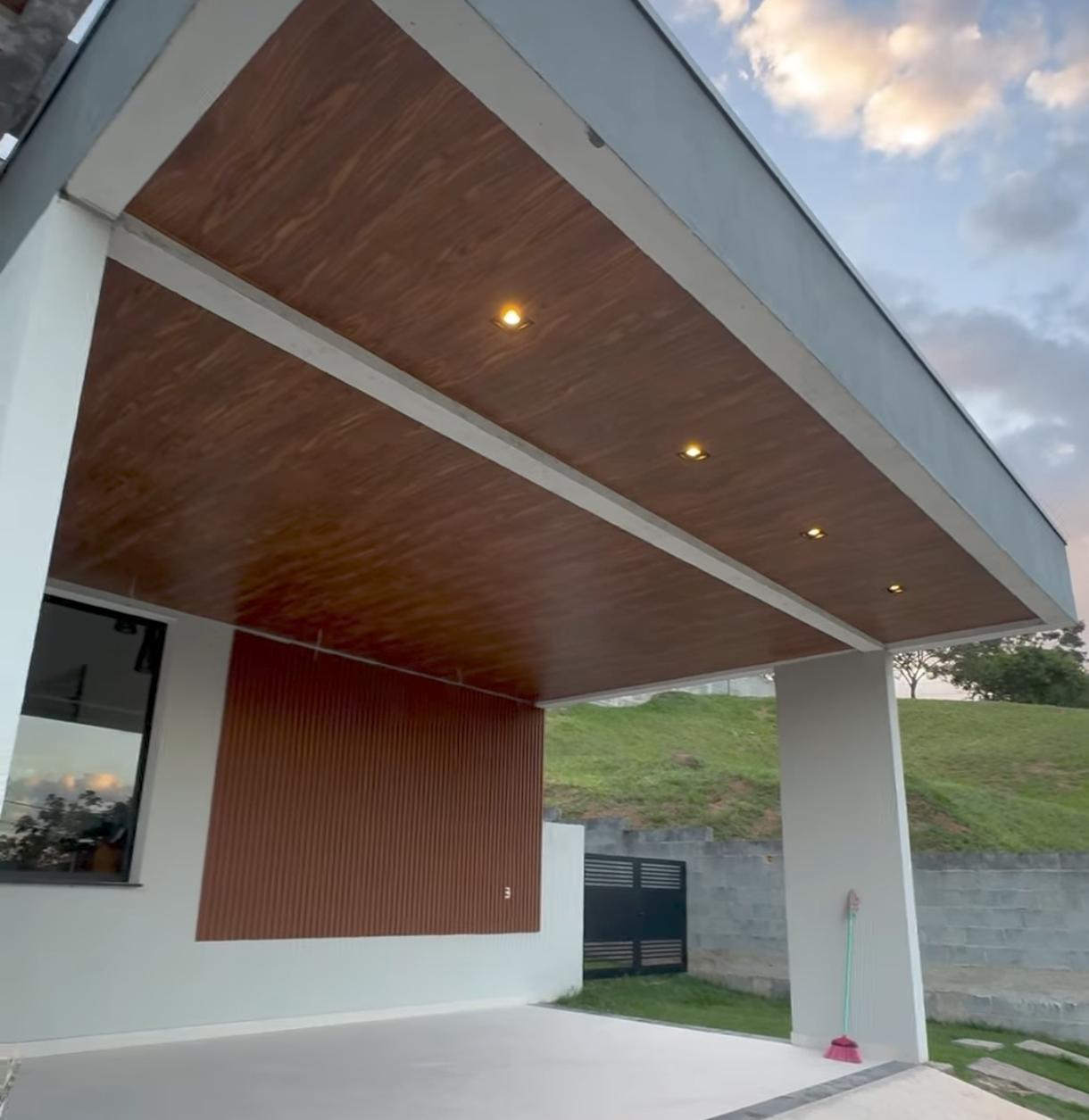 Fachada Moderna com Forro Amadeirado e Iluminação LED